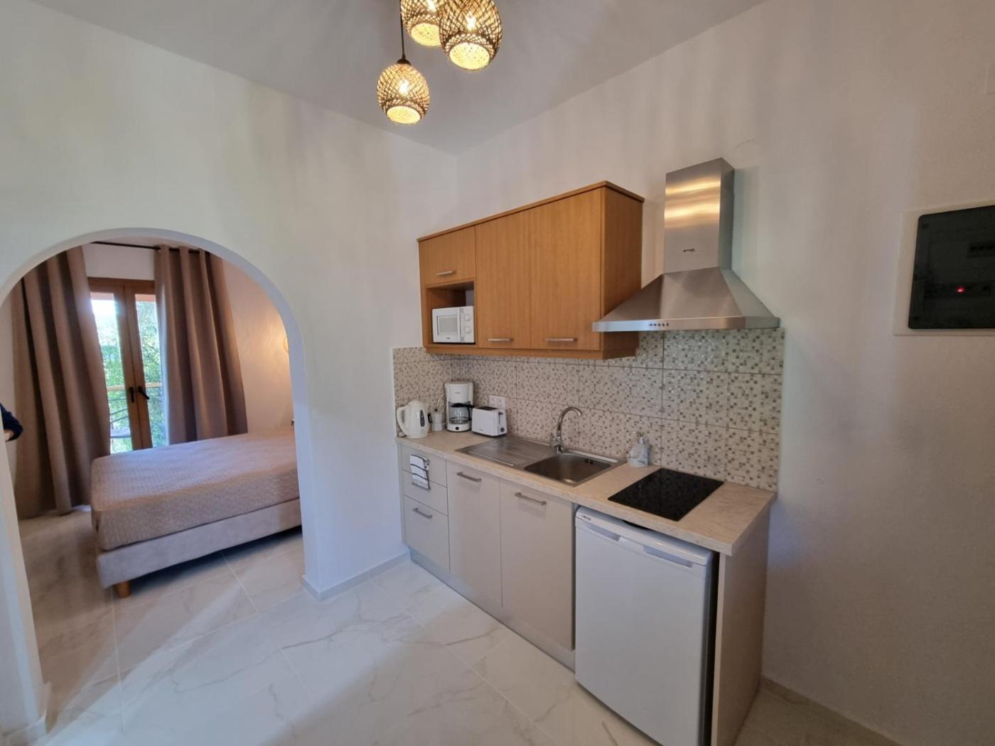 Studio with Sea View. In the kitchen, guests will find a stovetop, a refrigerator, kitchenware and a microwave. The studio features air conditioning, a private entrance, a balcony with sea views as well as a private bathroom boasting a walk-in shower. The unit has 2 beds. ;